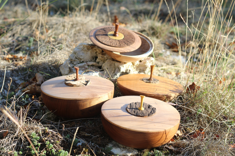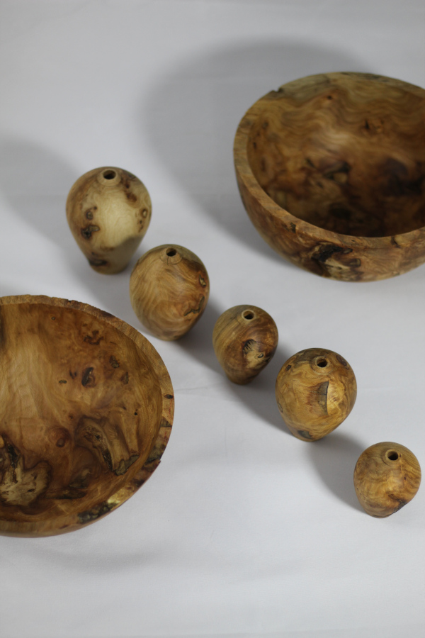 Je vous propose des gammes décoratives ou utilitaires, qui évoluent en fonction des bois et de mon inspiration. Chaque bois est unique et donne des pièces qui lui sont propres. je me laisse guider par le fil du bois.